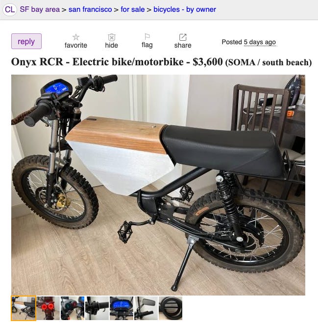 Welcome to Flywheel, a weekly exploration of the used side of owned micromobility. Each newsletter will highlight five of the most interesting used vehicles being sold in the market followed by an observation of trends emerging in the industry.